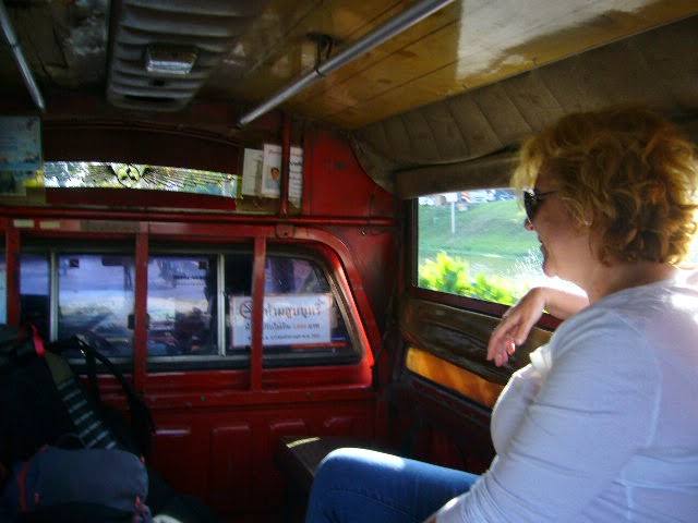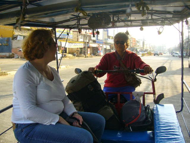 Teniamos billetes para el autobus de las 9,30, y en la puerta del hotel, cogemos un artefacto parecido a un tuck-tuck, pero al reves.