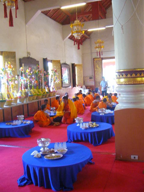 Luego, ya con tranquilidad, seguimos perdidos, y en un templo pequeño, nos metemos a olisquear, y parece que hay una ordenación de monjes novicios.